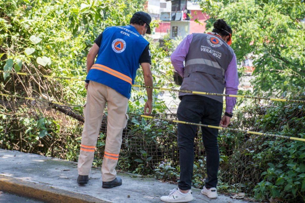 Personal de la Secretaría de Protección Civil de Veracruz realizó supervisión del deslizamiento de tierra registrado en una ladera del río San Antonio, ubicado a la altura de la prolongación de la Calle 3, en la exvía del Huatusquito, con el objetivo de iniciar el protocolo que permita realizar dictamen de riesgo.