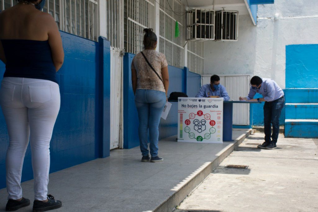 El titular de la Dirección de Educación y Deporte precisó que en atención a los protocolos de seguridad sanitaria se diseñó un esquema de pago para disminuir la movilidad ciudadana de las y los beneficiarios llevando hasta los planteles educativos los módulos de pago y entrega de despensa.