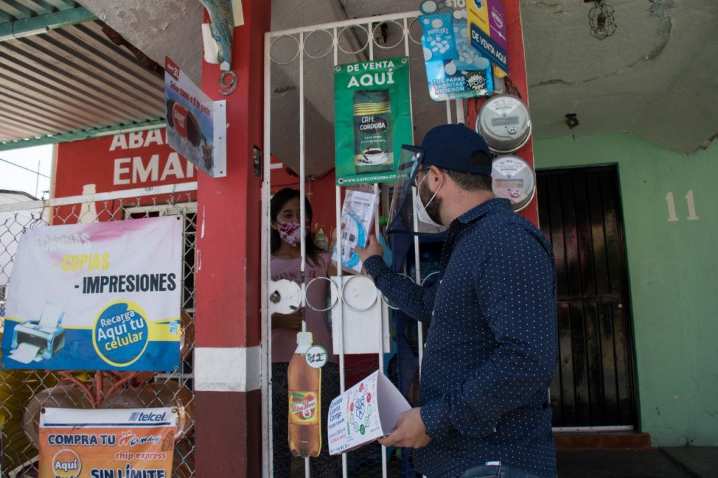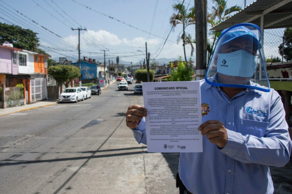 En su recorrido, personal del Ayuntamiento de Córdoba difundió información preventiva y solicitó a las personas que se hallaban en la vía pública el uso de cubreboca y a aplicar protocolos de higiene antes de ingresar a sus hogares.