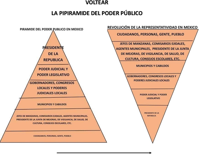 Pero voltear la pirámide del poder público global requiere ir más allá de acotar las formas por donde hace aguas el sistema y propicia la corrupción, tiene que ver con empoderar lo local, el municipio, la comunidad, tiene que haber una revolución de la representación real, tomando en cuenta la demografía y la psicología.