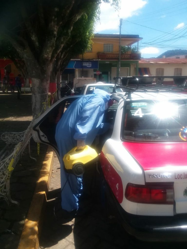 Ixhuatlán Del Café.- Unidades de transporte público y calles de las comunidades de Presidio y la Troje, fueron sanitizadas esta semana como parte de las acciones de prevención por COVID-19.