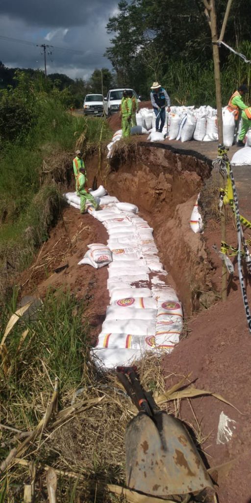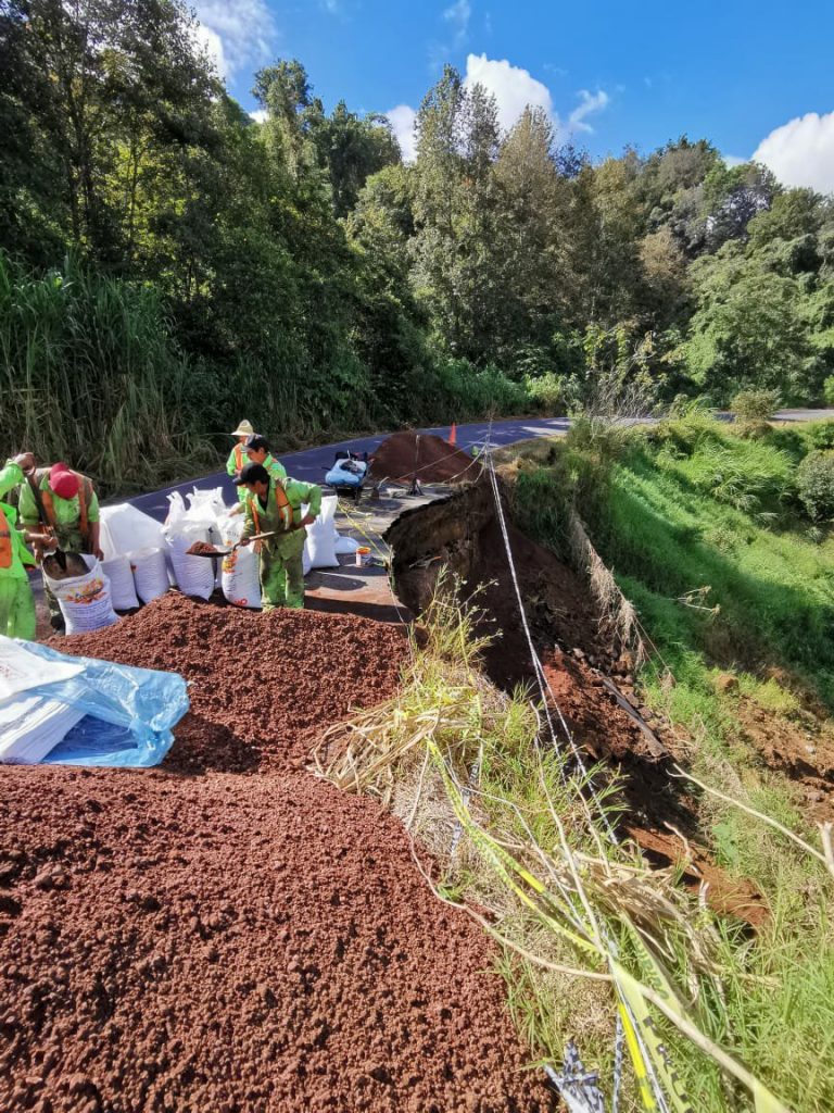En gran actividad trabajadores reparan el tramo carretero federal ubicado entre Huatusco y Elotepec, vía de comunicación afectada por un deslave ocasionado por las constantes lluvias que se han registrado últimamente.