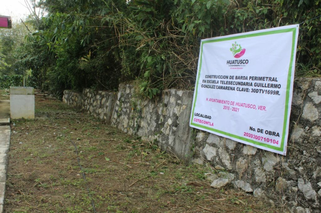 Alumnos de la Telesecundaria Guillermo González Camarena de la localidad de Cotecontla, serán beneficiados con la construcción de una barda perimetral en el lugar.