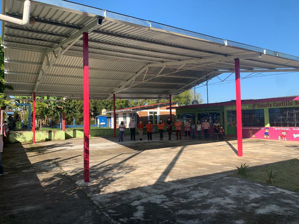 En la localidad de Tlavictepan, se llevó a cabo la inauguración de un techado para el Jardín de Niños Celeste Castillo Moreno, una obra que viene a mejorar las condiciones educativas de los niños que estudian su nivel preescolar.