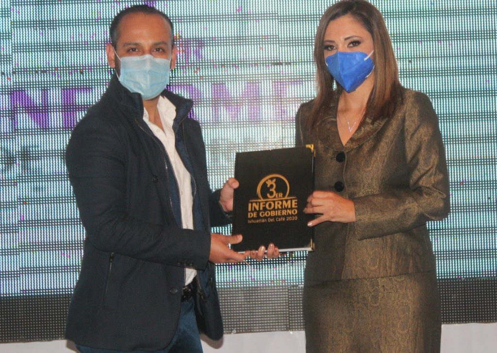 Al final de la sesión de cabildo, la alcaldesa hizo entrega de un ejemplar del informe ejecutivo de este 2020 al Delegado de Política regional de la zona, Rogelio Domínguez Carreón, representante del Secretario de Gobierno del estado de Veracruz, Eric Patrocinio Cisneros Burgos.