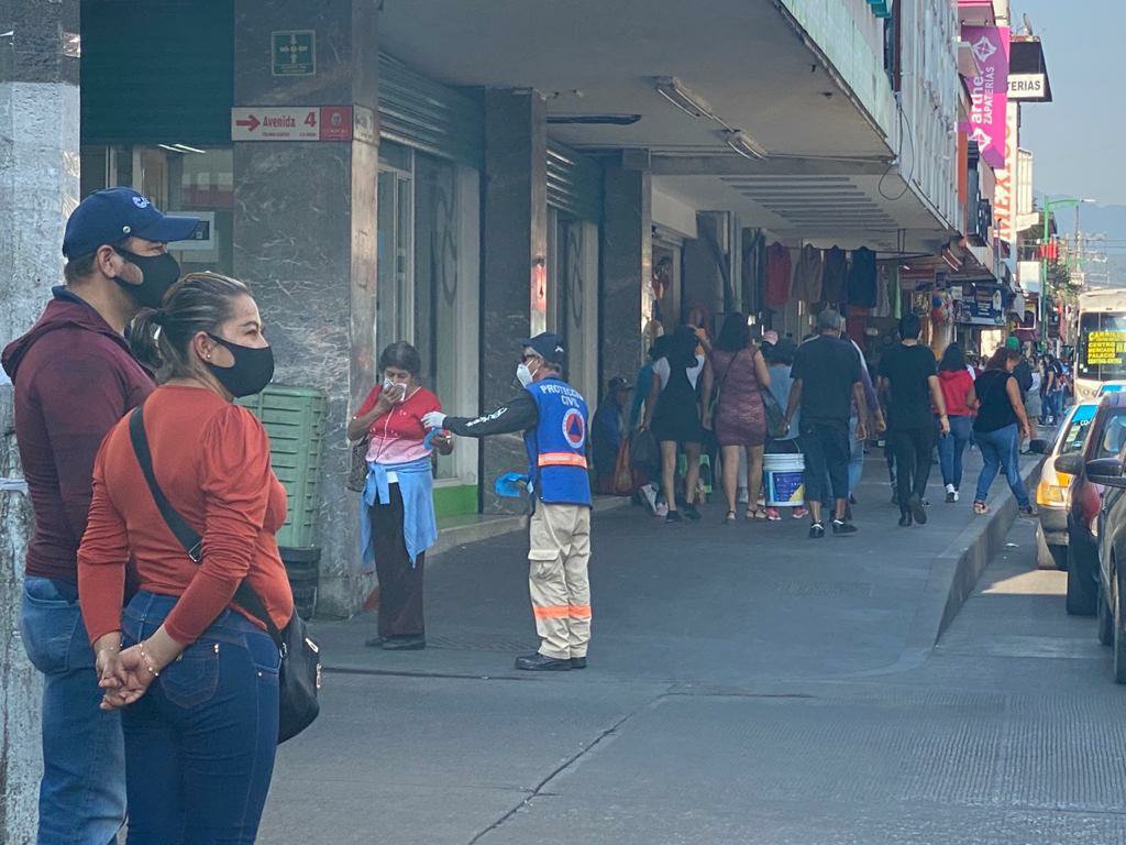Durante el operativo realizado en la zona comercial del centro de Córdoba se entregaron cubrebocas para motivar su uso y se supervisó que se mantenga la distancia física entre personas, además de la aplicación del gel antibacterial al ingreso a comercios. Igualmente, se revisó que los establecimientos cuenten con filtros sanitarios.