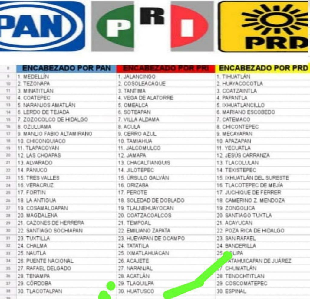 Por lo que finalmente en el estado de Veracruz, la coalición «Va por México», se amplió a otros municipios. Entre estos; Coscomatepec (PRD), Córdoba (PAN), Tenampa (PAN), Huatusco (PRI), entre otros.