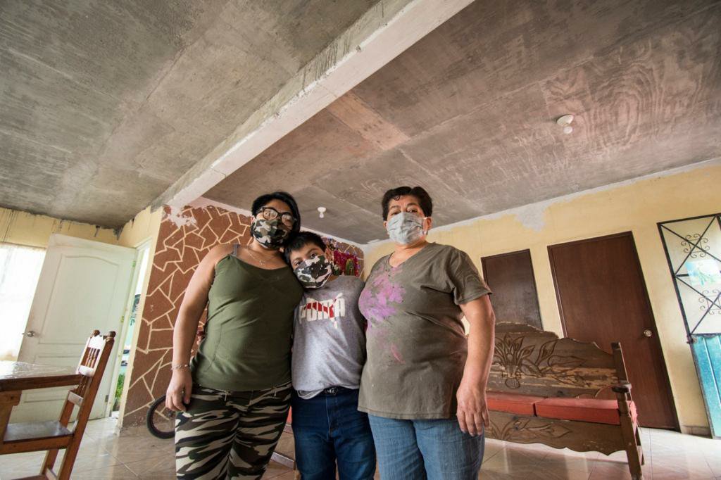 “Más que nada es tranquilidad, porque si estábamos muy mal, la lámina estaba muy deteriorada, se goteaba mucho la casa y hoy ya puedo dormir tranquila”, comentó Amada Cecilia Lezama Álvarez, beneficiada con una losa de concreto para su casa.