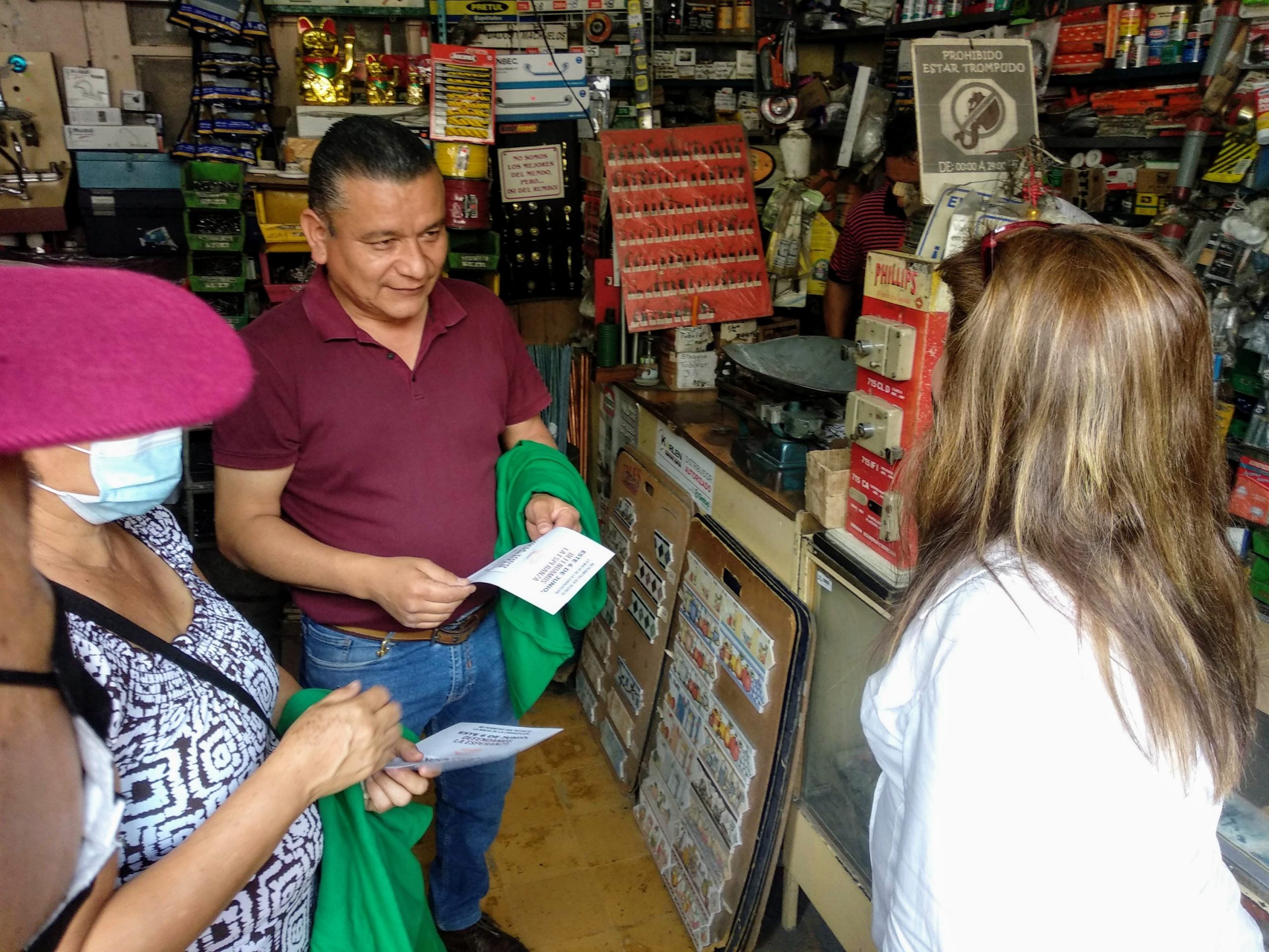 En su caminar, plática con los comerciales y gente que transita por las avenidas, invitandolos a votar este 6 de junio por la coalición «Juntos Hacemos Historia».