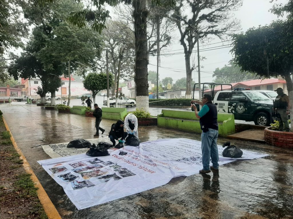 Y lo último fueron, las bolsas con restos de animales encontrados en la alameda a un costado de la cancha de volibol, de nuevo con lonas con leyendas de amenaza para el candidato del PRI.
