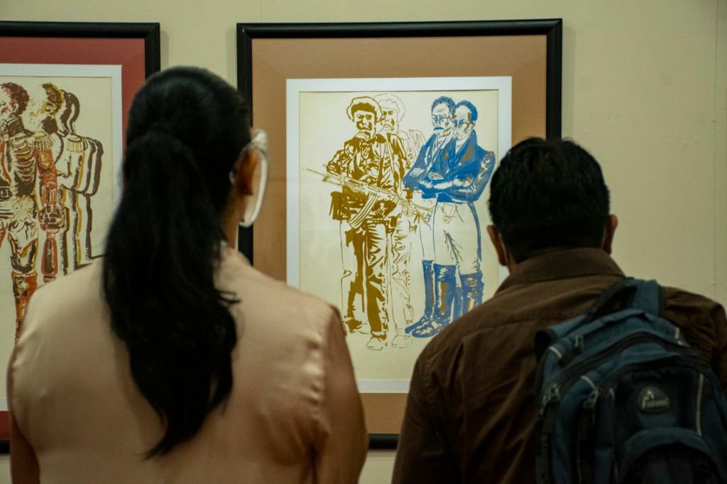 SocializArte está compuesta de 40 piezas que muestran las diversas luchas sociales que ha tenido México en la defensa de los derechos de campesinos, obreros y la clase trabajadora plasmadas en diversas técnicas de grabado como lápiz, acuarela y otras más.