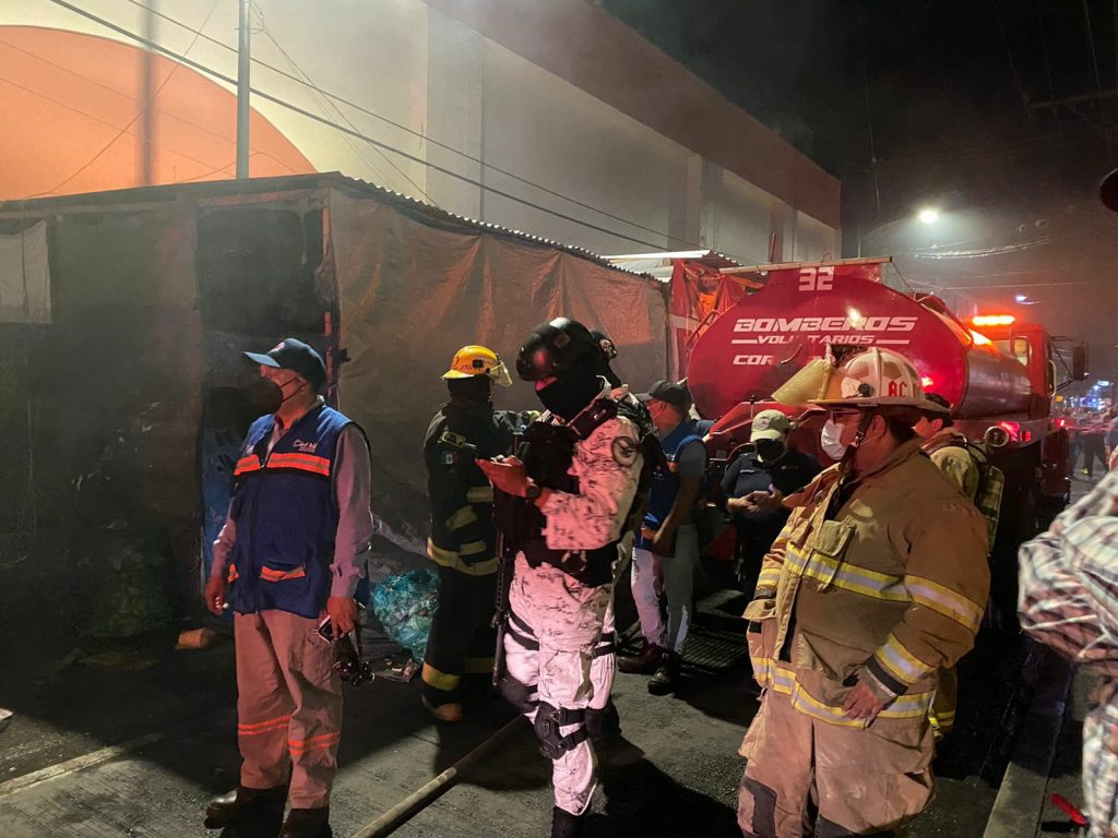 ATIENDEN PRIMEROS RESPONDIENTES DE CÓRDOBA INCENDIO DE LOCALES EN MERCADO REVOLUCIÓN