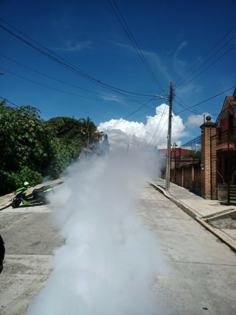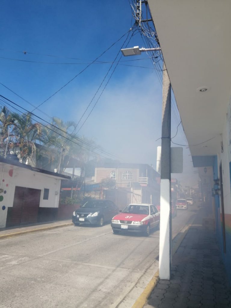 Empleados del Ayuntamiento de Huatusco, recorren las arterias de la ciudad rociando el líquido a través de la maquina térmica nebulizadora; sustancia orgánica que no hace daño a la salud.