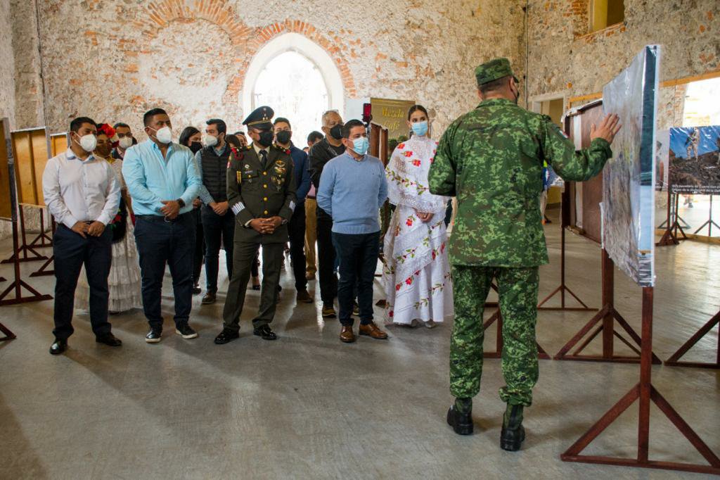 Los representantes castrenses y municipales recorrieron la fotogalería que está integrada por 30 cuadros que plasman la historia y servicio del Ejército Mexicano.