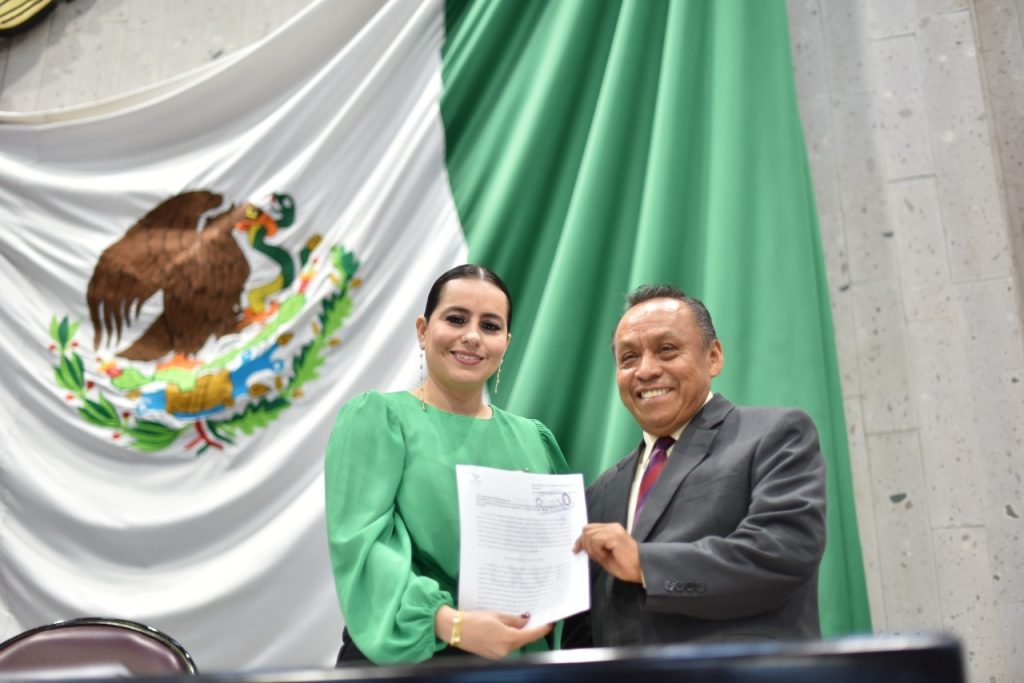 La presidenta de la Mesa Directiva de la LXVI Legislatura, diputada Margarita Corro Mendoza, recibió de la magistrada presidenta del Tribunal de Conciliación y Arbitraje del Poder Judicial del Estado, Itzetl Castro Castillo, su tercer informe anual de labores.