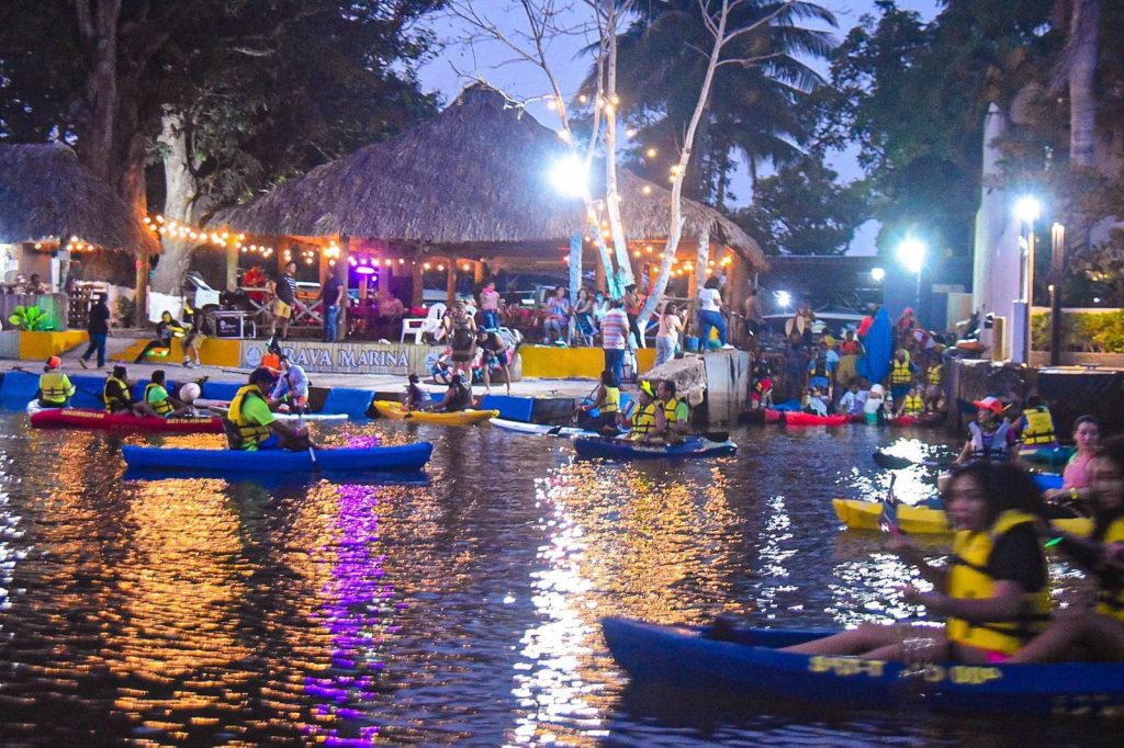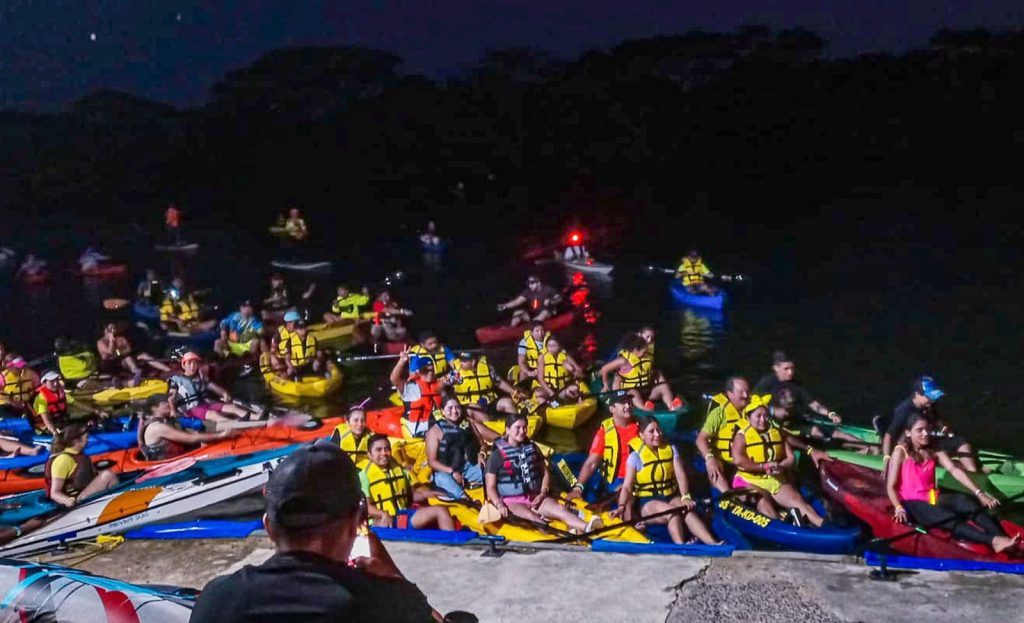 El presidente municipal Marcos Isleño participó en kayak durante las dos horas que duró el recorrido nocturno por el afluente del majestuoso río Jamapa.
