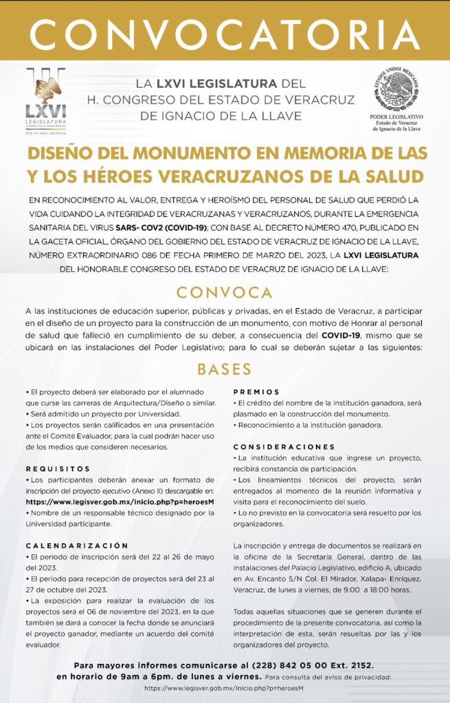 Por lo anterior, Nora Lagunes hizo un llamado a cualquier universidad pública o privada a participar registrandose y consultar las bases en la siguiente liga https://www.legisver.gob.mx/Inicio.php?p=heroesM