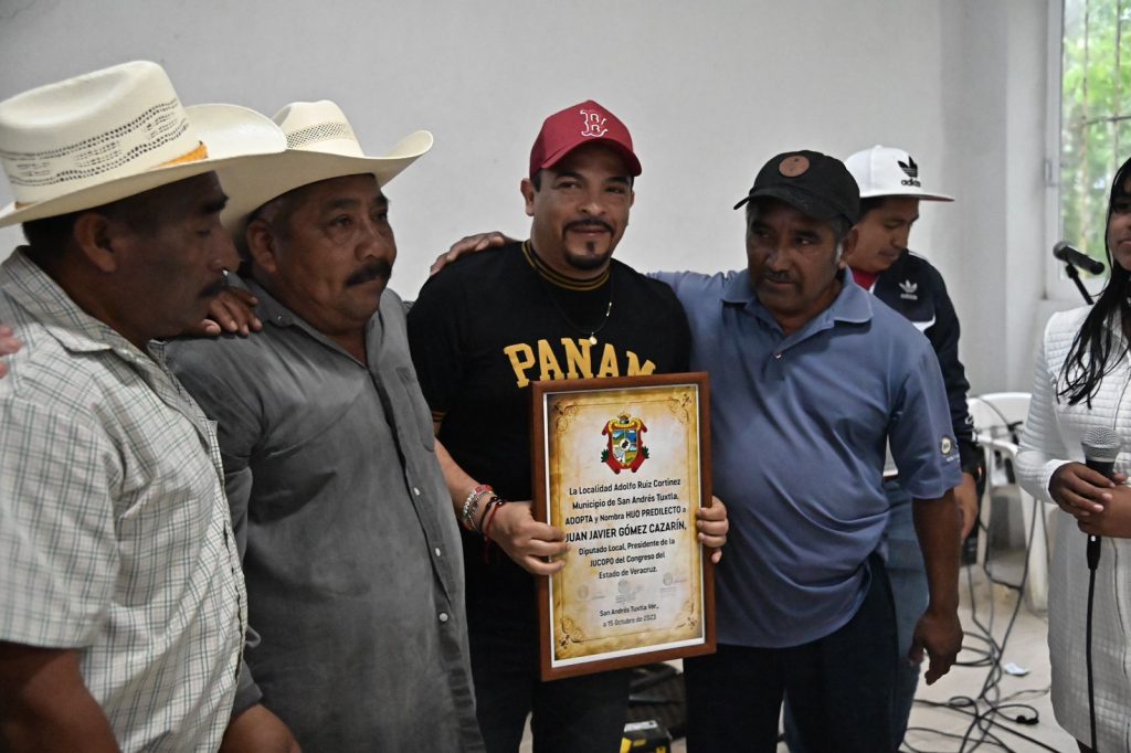 - Por su respaldo a las 350 familias, la comunidad adoptó y declaró como hijo predilecto al Presidente de la Junta de Coordinación Política, del Congreso de Veracruz