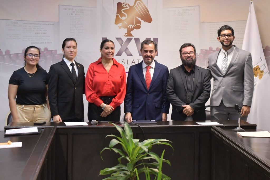 En la Sala Jesús Reyes Heroles, el diputado Luis Antonio Luna Rosales, presidente, la diputada Anilú Ingram Vallines, secretaria, y el legislador Sergio Lenin Guzmán Ricárdez, vocal de la misma comisión, dieron la bienvenida a los jóvenes Rafael Pérez Ramírez, Luis Emmanuel Alejandro de la Cruz Huerta y María Fernanda Luis Espinoza, quienes obtuvieron el primero, segundo y tercer lugar, respectivamente.