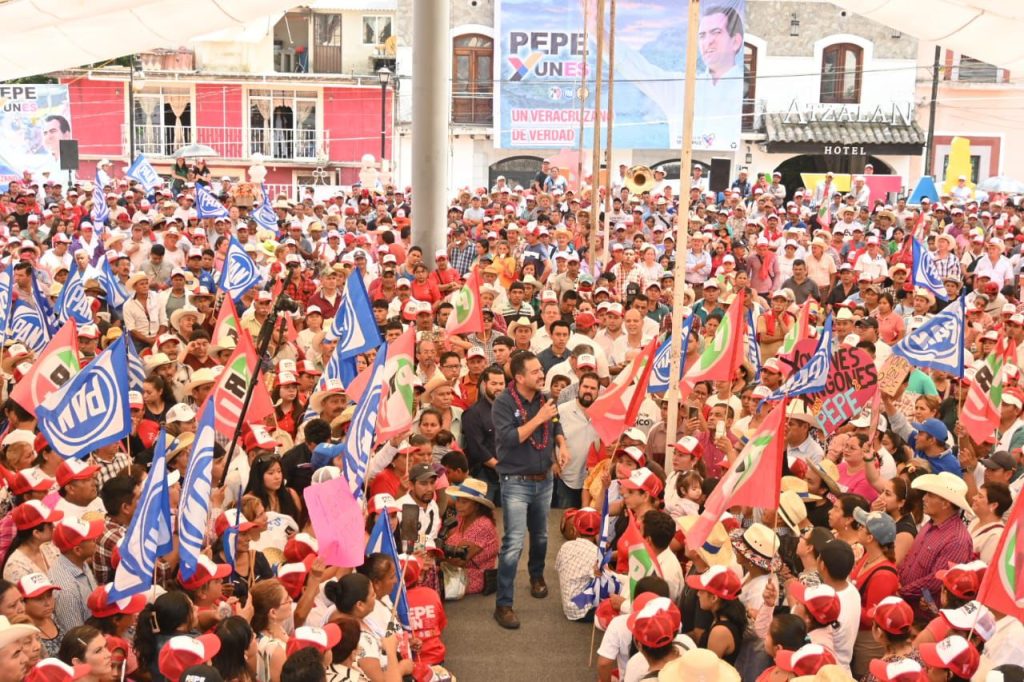 “Me da muchísimo gusto poder venir el día de hoy con Pepe, después de la exhibida que le puso otra vez en el debate a Rocío Nahle, hoy Pepe amanece más puntero que nunca y tenemos la certeza que va a ganar la elección del 2 de junio”, expuso.