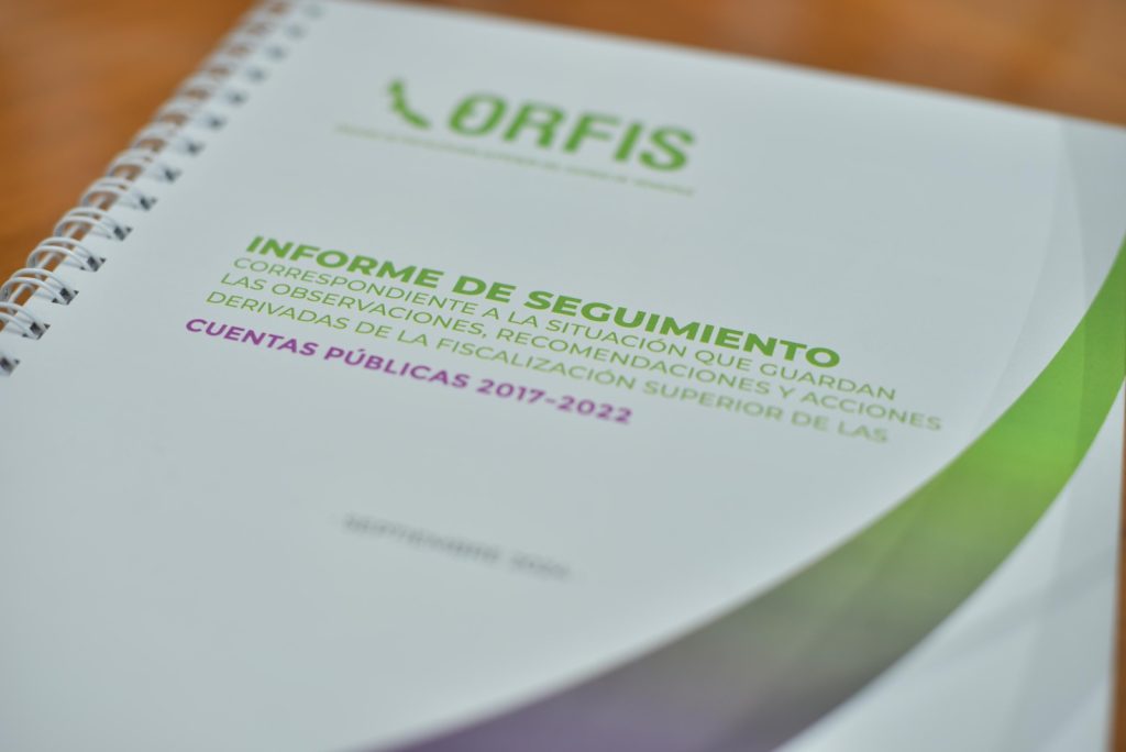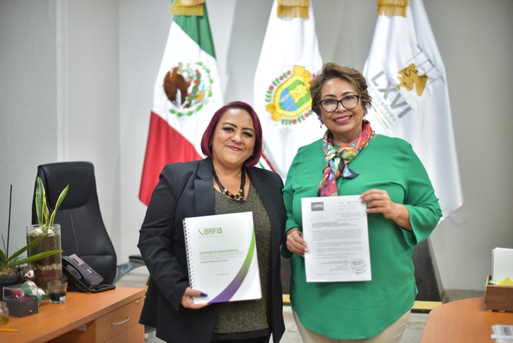 La LXVI Legislatura del estado, por conducto de su presidenta, diputada Adriana Esther Martínez Sánchez, recibió de la titular del Órgano de Fiscalización Superior del Estado (Orfis), auditora Delia González Cobos, el informe de seguimiento a la situación que guardan las observaciones, recomendaciones y acciones promovidas de la Fiscalización Superior de las Cuentas Públicas 2017-2022.