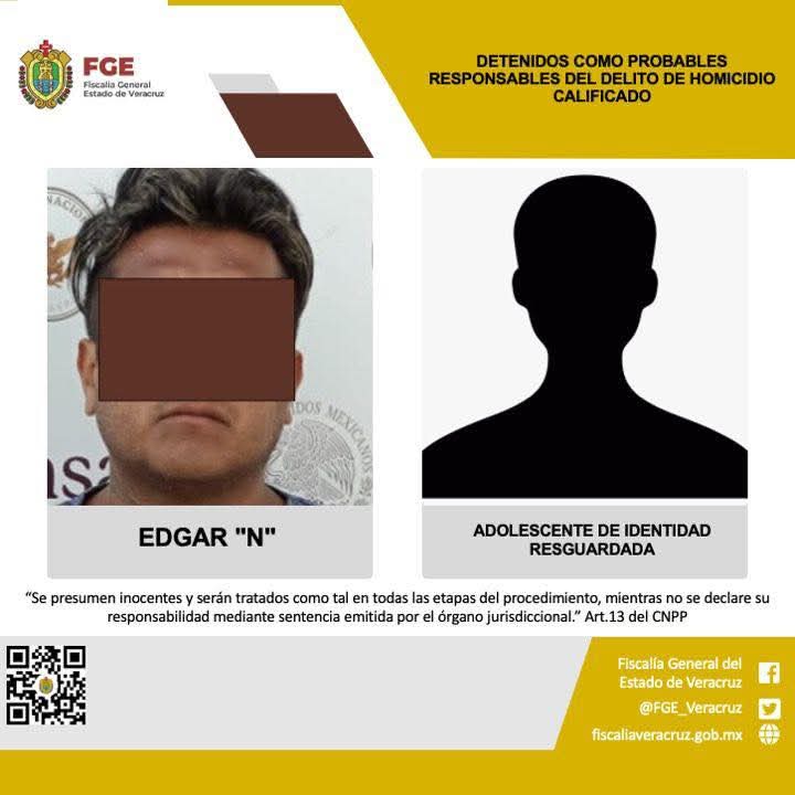 Xalapa, Ver., 12 de abril de 2025.-La Fiscalía General del Estado informa que, elementos de la Policía Ministerial cumplimentaron una orden de aprehensión en contra de Edgar «N», en el municipio de Totutla, y en contra de un adolescente de identidad resguardada, en la ciudad de Xalapa, como probables responsables del delito de homicidio calificado, cometido en agravio de una víctima adolescente de identidad resguardada.