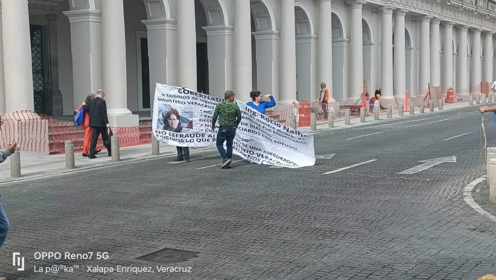 Xalapa, Ver. — Maestras y maestros jubilados bloquearon este martes todos los carriles de la calle Enríquez, justo frente al Palacio de Gobierno, en protesta por el incumplimiento de acuerdos previamente firmados con el Gobierno del Estado.